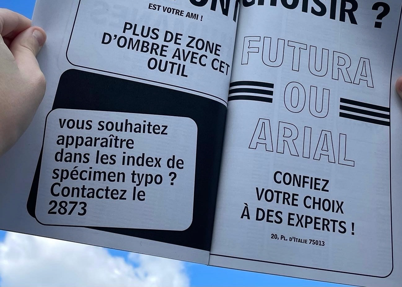 To pay tribute to the famous Bell Centennial typeface, and its use in famous telephone directories, we created a typographic specimen with advertisements and propaganda by imaginary typographers, and composition grids: a little visual pleasure guaranteed !